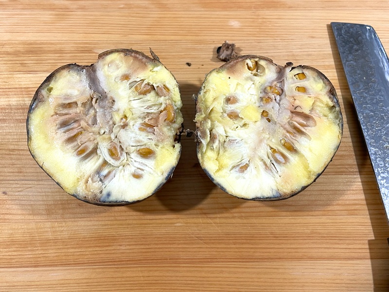 あと中心に芯が通っていて、そこから傷むのは同じくバンレイシ属のアテモヤやチェリモヤにも見られる特徴かな。