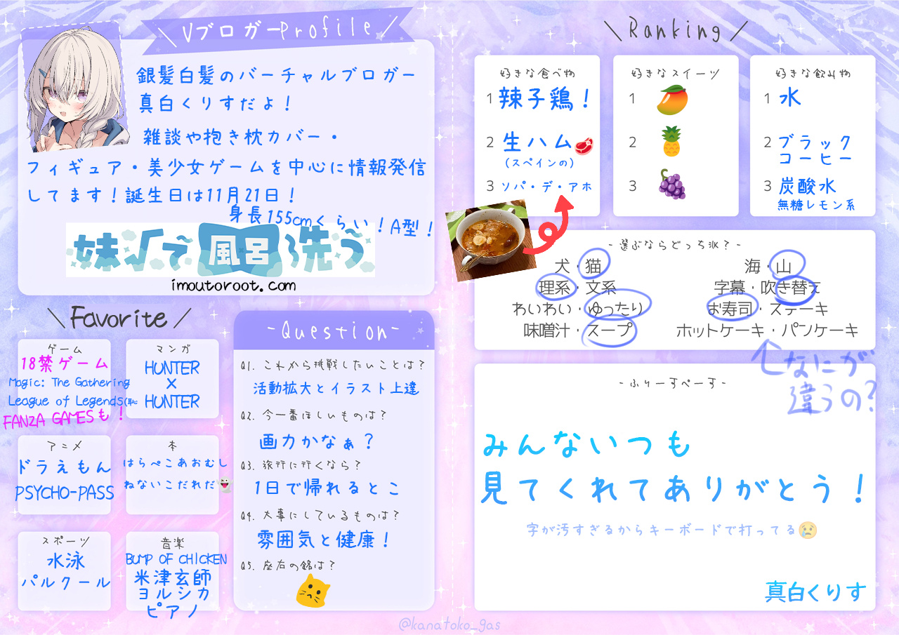 そして、今回は皆さんとの距離が縮まるように誕生日らしくプロフィールを書いてきたんですよ!!