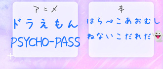 まぁ、ドラえもんとPSYCHO-PASSかなぁ~。どっちもSFだから同じだね!!