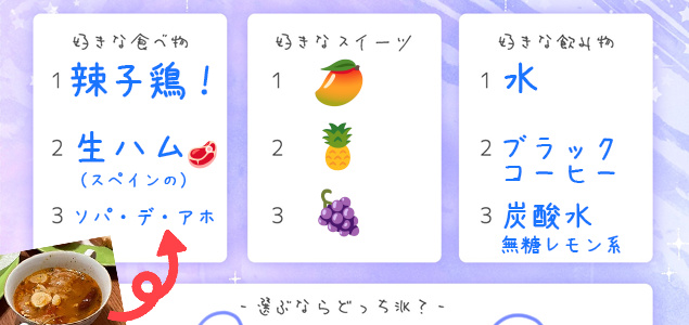 好きなスイーツは汁が多い生果。実はスーパーに行くたびにフルーツの盛り合わせを買ってるんですよね~。マンゴーは色んな品種を食べてきたけど無難に太陽のタマゴが一番おすすめ。次点はキーツマンゴー。パイナップルは品種とかあまり気にせず安定感があって好き。ぶどうはそこまで食べ比べてないけどナガノパープルとかおいしいと思う。