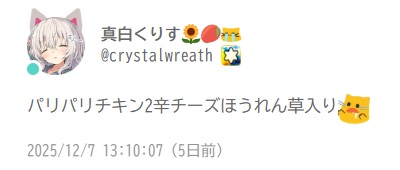 皆さん、こんばんは~おはようございます~。銀髪白髪のバーチャルブロガー真白くりす(Misskey,Bluesky)だよ!