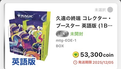 それで思い出しました。12月中旬くらいにくじで当てた5万円のBOXあるじゃないですか。開けたんですよ。