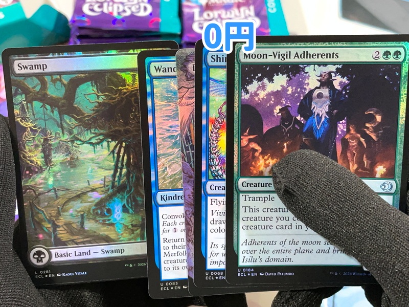 最初はコモンの0円コーナー。それからアンコモン→基本土地と続いてレア5枚って構成です。