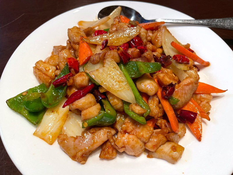 向かう途中で、初めての台湾料理店で夕食を取りました。辣子鶏っぽいメニューがあったので挑戦者として注文!
