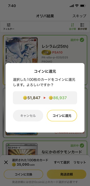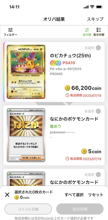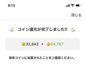 ピカチュウを逃がした後、追加でちょっと回して90,000コインに戻ってきました。引きがおかしすぎて正直交通事故に遭わないか心配になる。人間、運がありすぎると本当に「死ぬのかな?」って思うみたいです。