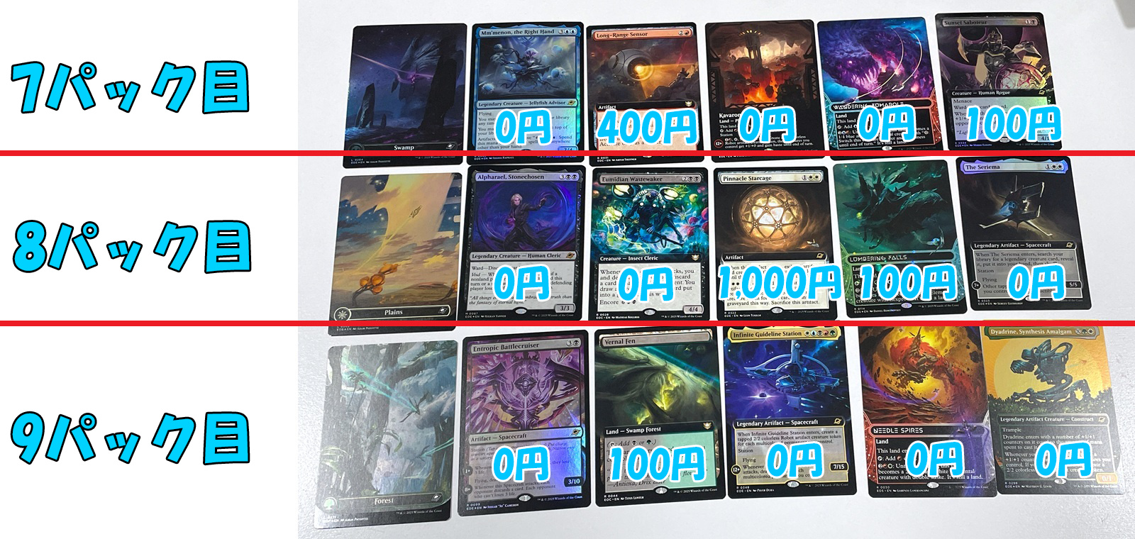 FFコラボと比べると血管が破裂しそうな塩気だけど、MTGとしては普通くらいの塩かな。ちなみに前回のFFコラボは本当にすごくて、発売当日に300億円を売り上げてニュースになってました。『千と千尋の神隠し』の興行収入が300億ちょいって考えるとかなり売れてそう。