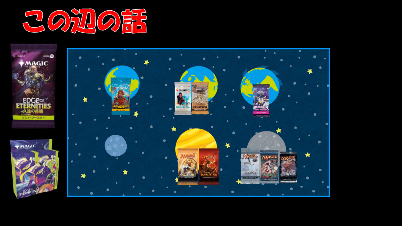 今回のテーマは宇宙。実はMTGって新弾ごとにストーリーがあってWeb小説も公開しているカードゲームなんですよ。