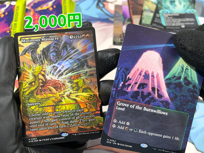この基本土地以降がレアゾーンになります。今回は後ろに行くほど高額カードが排出されるみたい。